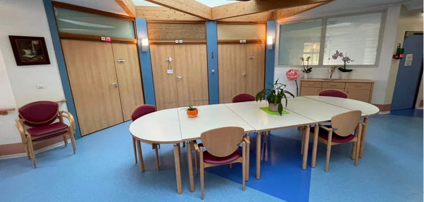 L’établissement comporte à chaque étage 2 à 3 maisonnées (espace salon) avec une grande table entourée de 6 à 8 chambres.