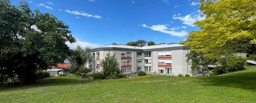 A l’arrière du bâtiment, se trouve une terrasse verdoyante accessible aux résidents et leurs proches.